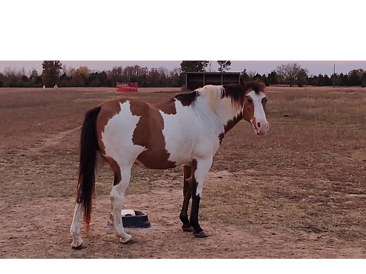 Dallas found us in October 2017. He arrived in our front yard one morning, quite unexpectedly, with several other larger equine. Later that day when the owner came to claim them, they mentioned that they were trying to find him another home because their kids didn't want him, so we offered to keep him here. He was two, a stallion, and had quite the attitude as you might imagine. We quickly had him gelded and he became part of our family. He loves cookies, apples, and carrots, and never misses a meal. Guard your pockets and the gate, or anything you put on the ground because he's very nosey, constantly seeks attention, and always wants to be in the middle of any action.