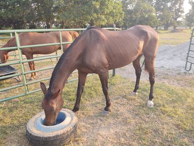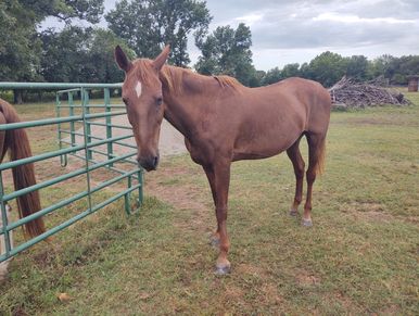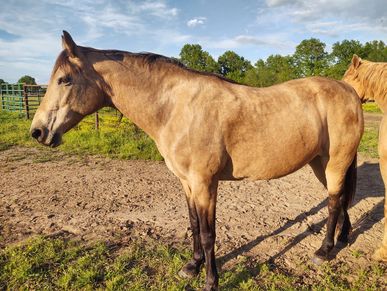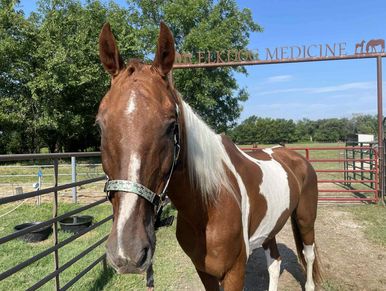 Shiloh has been at Elkdog medicine Ranch since December 2023. Both Shiloh (age 13) and Jackson (17) were surrendered when their owner of five years needed to relocate and could not take them with her. Tragically, we lost Jackson on April 19, 2025. Shiloh is an integral member of our main herd and leads the other ladies with a fierce spirit.